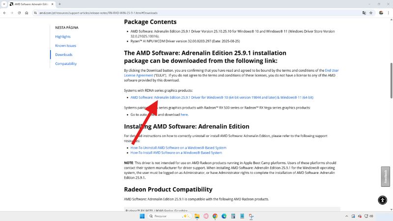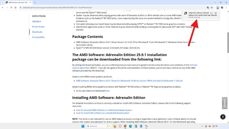 Feito isso, agora baixe a versão do AMD Software Adrenalin 25.9.1 [link aqui]. Essa é a última versão em que o AMD Noise Suppression estava funcionando.