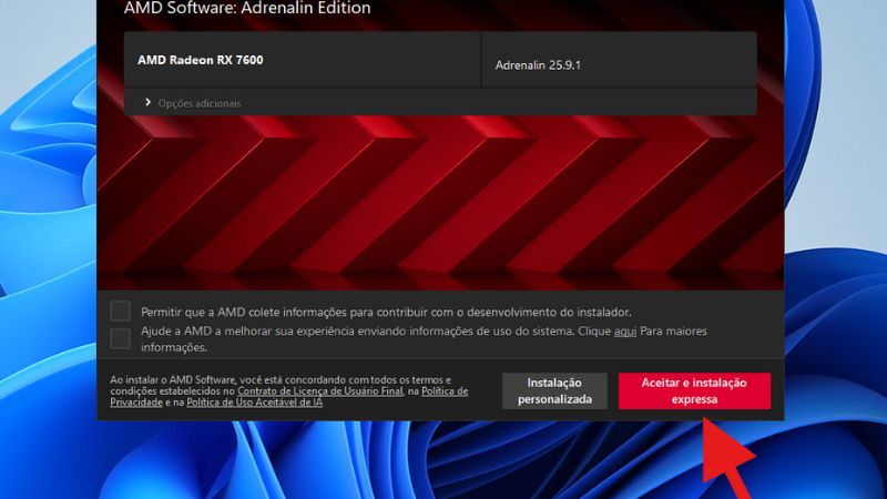 Espere até que o AMD Software Adrenalin 25.9.1 seja instalado.