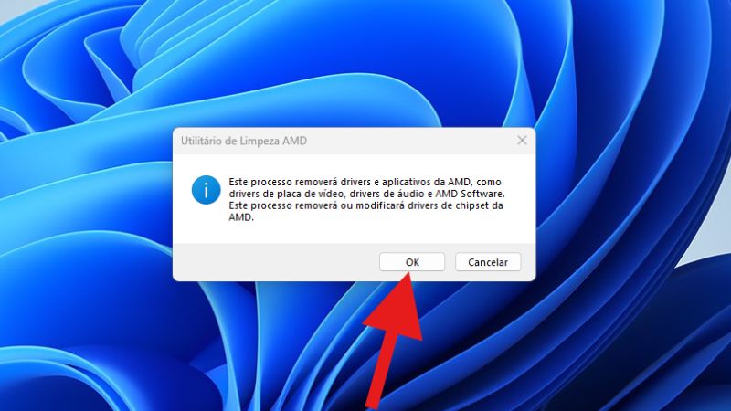 Em seguida, vai aparecer uma mensagem dizendo que o procedimento removerá todos os drivers e aplicativos da AMD do seu PC. Pode ficar tranquilo e clicar em “OK”.