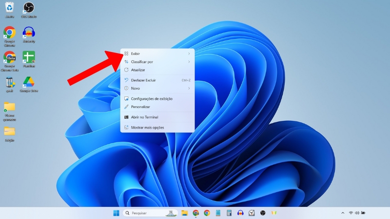 1. Clique com o botão direito do mouse sobre a área de trabalho.