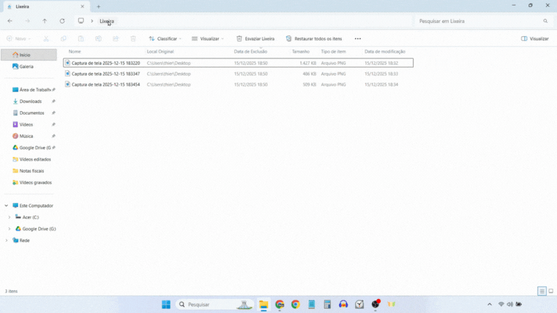 Após isso, o Explorador de Arquivos abrirá a pasta da Lixeira.